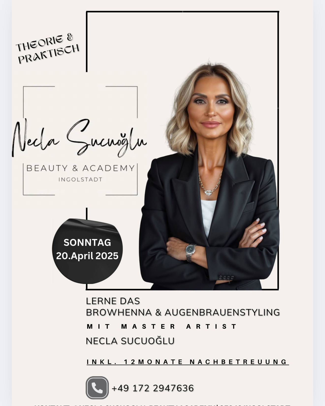Hallo meine Lieben, ich heiße Necla Sucuoglu und habe mit Leidenschaft mein Kosmetikstudio in Friedrichshofen/Ingolstadt seit eröffnet und arbeite als Lash- und Browstylist. Ich biete außerdem folgende Schulungen an: •Lash- und Browlifting •BrowHenna & Augenbrauenstyling •Professionelle Gesichtsbehandlung Ich freue mich auf deinen Besuch..