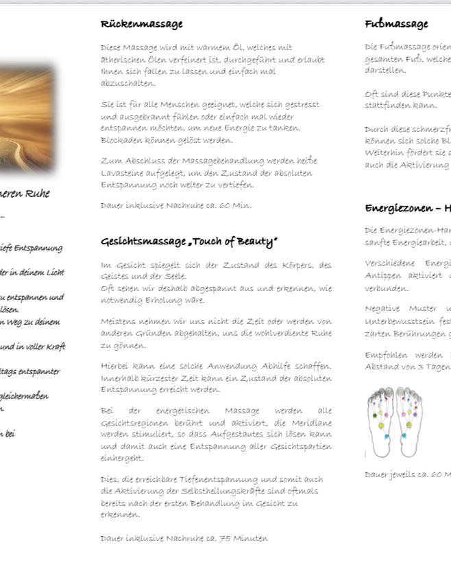 Ich habe mittlerweile alle Massagen aus dem Angebot ausprobiert und liebe sie alle!! jede Behandlung ist professionell, unglaublich entspannend und absolut einzigartig. Man spürt sofort wie viel Leidenschaft und Liebe in jedem einzelnen Handgriff steckt. egal ob zum lösen von Verspannungen oder einfach um dem Alltag zu entfliehen, hier ist man in jedem Fall an der richtigen Stelle! für mich gibt es keinen besseren Ort um sich selbst etwas Gutes zu tun, ich kann das jedem nur ans Herz legen ❤️☺️