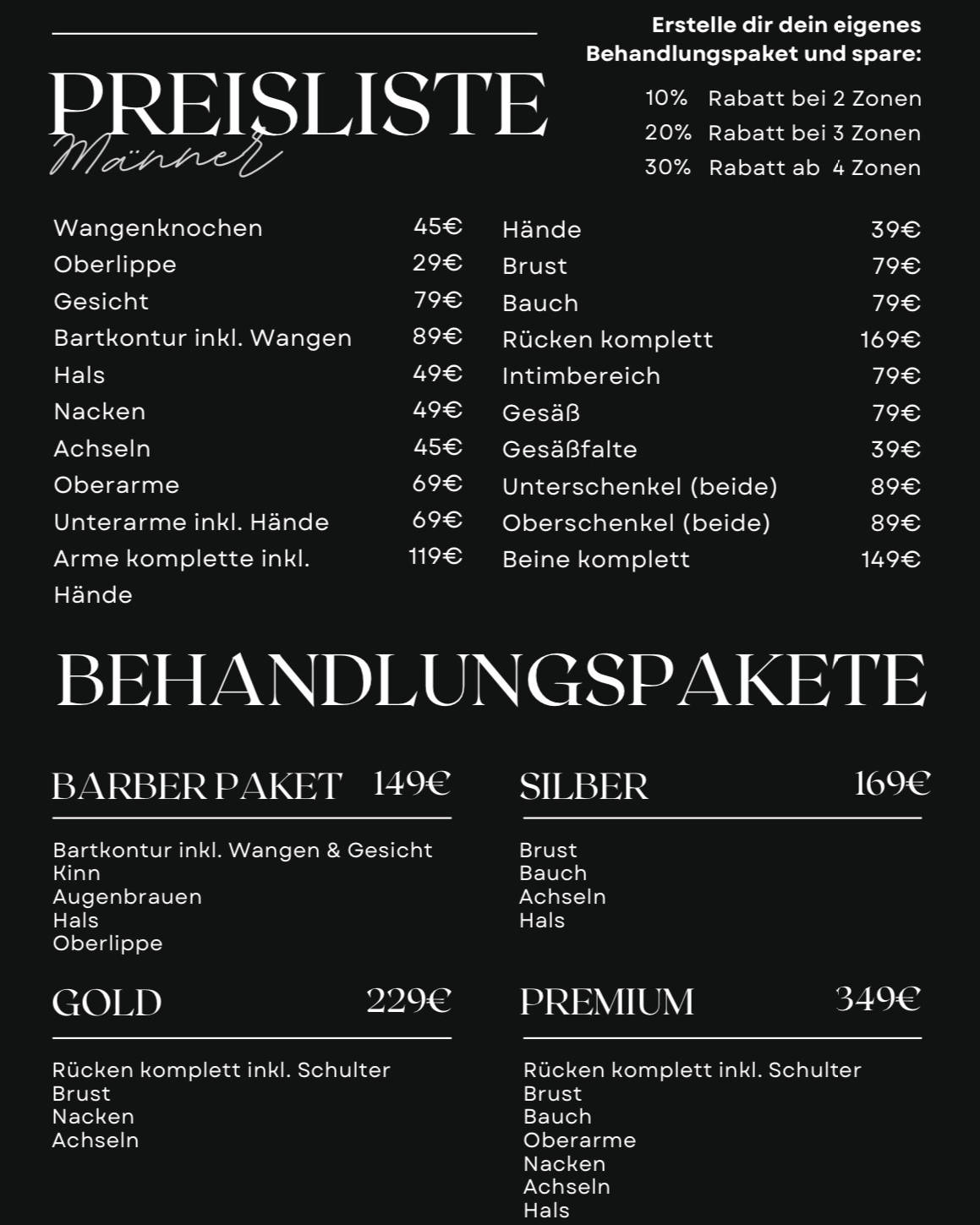 Im Bereich Oneskinstudio MEN ermöglichen wir mit der neuesten Lasertechnologie den Weg zur dauerhaften Glätte. Egal ob Gesicht, Bartkonturen, Rücken, Brust oder doch nur die Achseln; Die Behandlungen mit dem Hochleistungsgerät sind für fast jeden Haut und Haartypen geeignet und relativ schmerzfrei. Vereinbare gerne einen kostenlosen Beratungstermin und lasse dich von unserem Fachpersonal überzeugen. Hinweis: Durch den Einsatz von Hochleistungsgeräten nach NISV, verfügen Wir über alle erforderlichen Fachkundenachweise nach § 1 Absatz 1 Satz 1 NiSV