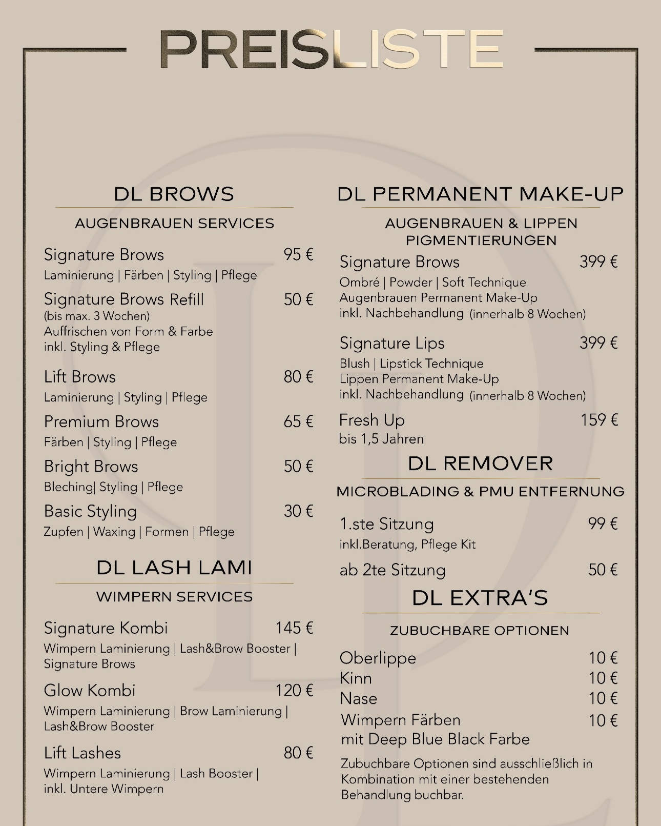 Extra‘s Zubuchbare Optionen - nur in Kombination mit einer Hauptbehandlung buchbar.