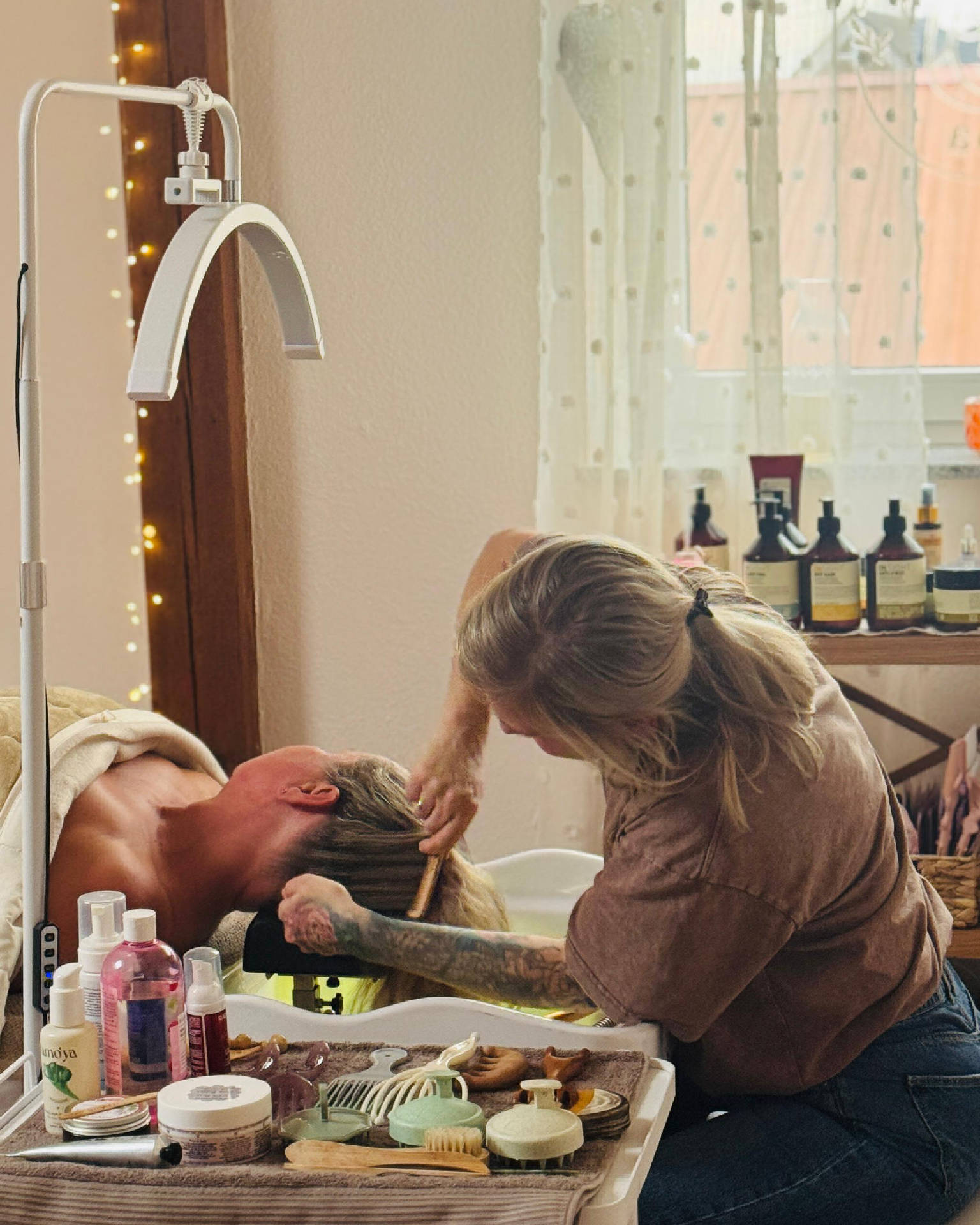 ✨ Head & Face Premium Spa ✨ Ein exklusives Verwöhnritual für tiefe Entspannung und Regeneration. Genießen Sie eine Kombination aus wohltuender Aromatherapie, Gesichtsmassage und Kopfhautpflege auf höchstem Niveau. Sanfte Peelings, Hydrotherapie sowie eine Lichtbehandlung mit rotem Licht fördern die Durchblutung, stärken die Haut und schenken Vitalität. Nährstoffreiche Masken für Haar und Gesicht, eine wohltuende Dampfanwendung und ein entspannender Massage-Mix für Kopf, Nacken, Schultern und Hände sorgen für ein unvergleichliches Wohlfühlerlebnis🌿💆🏽♀️✨️🥰