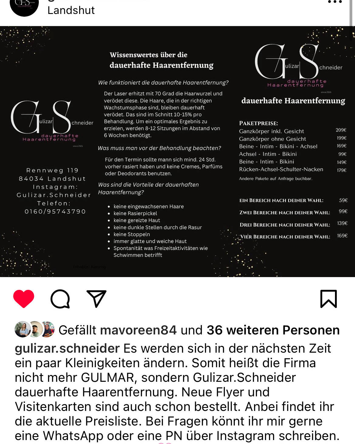Hallo, mein Name ist Gulizar Schneider. Ich besitze mein Kosmetikstudio seit 2021 und bin erfolgreich in der Branche tätig. 2021 bin ich aufgrunddessen das ich selber sehr starke Probleme mit meinem Haarwuchs hatte auf die Idee der Selbstständigkeit gekommen, um allen die Möglichkeit zu geben dauerhaft Haarfrei zu werden, zu bezahlbaren Preisen. So das es sich für mich und auch für euch Rentiert. ☺️ Ich bin ein sehr offener kommunikativer und sozialer Mensch. Bei mir brauchst du dich nicht verstellen oder Angst haben, wir kriegen das alles gemeinsam hin! Mit mir in meinem Studio, ist noch ein kleiner Teddy 🧸 der sich freut dich kennenlernen zu dürfen. Ich freu mich auf dich 🥰