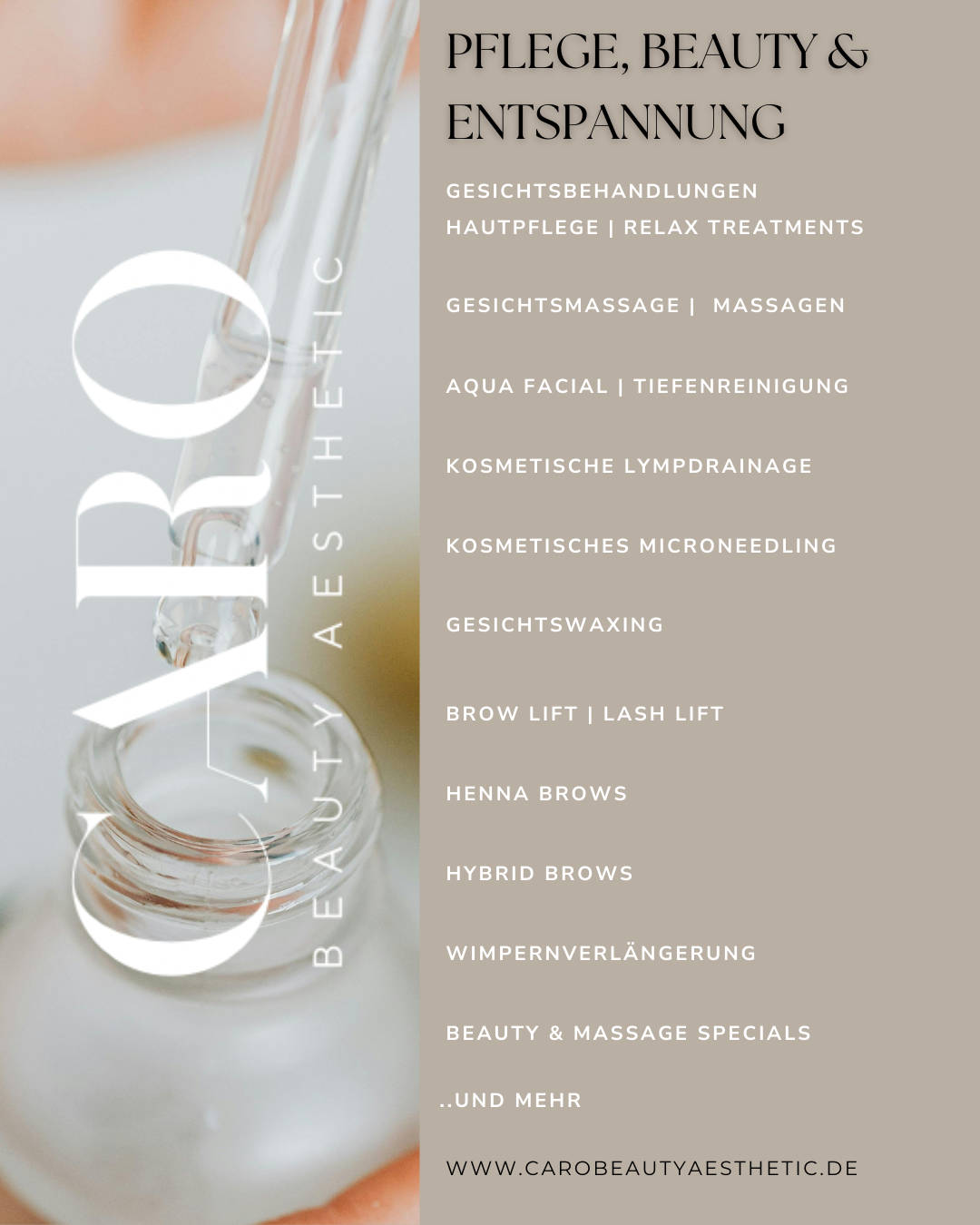 Neueröffung ab Mitte 2026 in 65421 Groß-Gerau + Termine bald verfügbar! Hinweis: Sie können mehrere Leistungen buchen. Die genaue Behandlungsdauer sowie Informationen zur jeweiligen Behandlung finden Sie in den Details der entsprechenden Leistung. Über Caro Beauty Aesthetic: Zeit für Ihre Haut. Zeit für Ihr Wohlbefinden. In einer ruhigen und entspannten Atmosphäre nehme ich mir bewusst Zeit für Sie, damit Sie ankommen, abschalten und den Alltag hinter sich lassen können. Jede Behandlung wird individuell auf Ihre persönlichen Bedürfnisse abgestimmt mit dem Ziel, Körper, Haut und Seele in Einklang zu bringen. Bei mir erhalten Sie nicht einfach nur eine Behandlung. Sie erhalten Zeit fur sich. Keine Hektik - stattdessen eine bewusste Auszeit in entspannender Atmosphäre, einer warmen und wohligen Umgebung voller Ruhe in der Sie loslassen dürfen. Als geprüfte Fachkosmetikerin biete ich ein ganzheitliches Behandlungskonzept an, das Pflege, Beauty und Entspannung miteinander verbindet. Mein Angebot umfasst Gesichtsbehandlungen, Entspannungs- und Liftingmassagen, kosmetische Lymphdrainagen, Kosmetisches Microneedling, Aqua Facial, Wellness-Massagen, Dry Head Spa, Lash- und Brow Liftings, Henna Brows, Augenbrauenbehandlungen sowie Gesichtswaxing. Sollten Sie keinen passenden Termin finden, kontaktieren Sie mich gerne. Ich freue mich auf Sie!