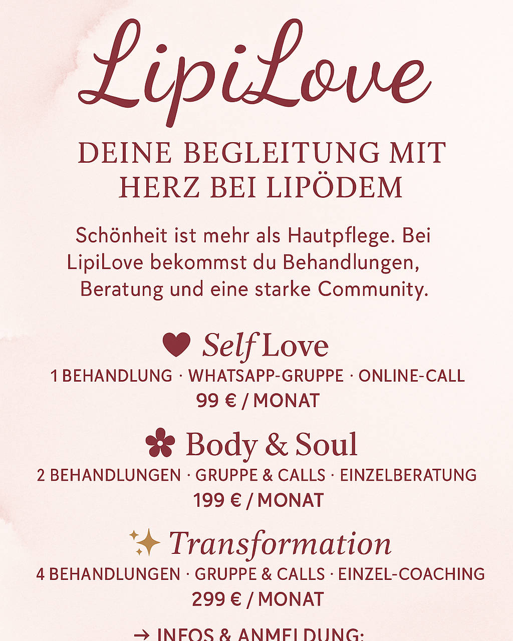 Hallo Ihr Lieben, Mein Name ist Nina, und ich bin 44 Jahre alt. Seit 2018 bin ich selbstständig im Bereich der Kosmetik, und habe mich darauf spezialisiert, dich ganzheitlich zu sehen. Das bedeutet für mich das Arbeiten von Herz zu Haut. ich gehe individuell auf deine Bedürfnisse ein, bespreche mit dir deine Wünsche und Vorstellungen, und behandle mit Tiefgang. Dein Wunsch ist meine Mission. Meine Kunden begleiten mich von Tag eins an. Durch meinen eigentlichen Beruf der Physiotherapie, habe ich mich ebenfalls auf Energiebehandlungen spezialisiert. So zum Beispiel die Craniosacrale Therapie, in der ich Blockaden löse, sowohl emotional, als auch körperlich. Das ganze sorgt dafür zum Beispiel, dass ich dir ein langanhaltenden Grad Erholung verschaffen kann, und dir zu deinem selbst und Glow zurück verhelfe. Kosmetik ist so viel mehr als nur Cremes auftragen. Wenn du dich hier wieder findest, buche gerne einen Termin bei mir. Kosmetik von Herz zu Haut, vom Körper in die Balance. Deine Nina