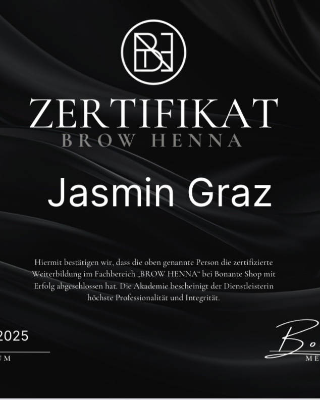 Ich bin Jasmin Graz bin 24 Jahre jung und verwirkliche gerade meinen Traum von einem kleinen Homestudio , Kosmetik war schon immer meins und um so mehr freue ich mich das ich diesen Weg gewählt habe und andere Frauen glücklich machen kann 😊ich freue mich schon auf jeden einzelnen und auf tolle Bewertungen