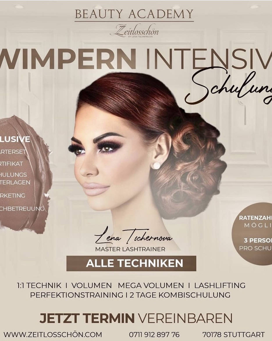 Mein Name ist Lena Tschernova ich bin 40 Jahre und seit 21 Jahren in der Beautybranche . Mein Beautystudio & Academy führe ich jetzt nun schon seit 14 Jahren sehr erfolgreich . In meiner Academy biete ich verschiedene Schulungen wie Wimpernverlängerung ( alle Techniken) Lash & Browlifting, Zahnbleaching , Microblading, Gel Nägel & Maniküre Pediküre Shellac an . Meine Schulungen finden in kleinen Gruppen statt 2-3 Schüler pro Schulung . Wenn du dich für eine Schulung interessierst würde ich mich sehr freuen dich in meiner Beauty Academy begrüßen zu dürfen .