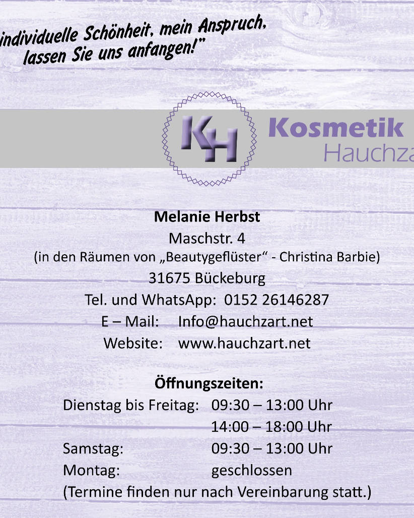 Hallo, mein Name ist Melanie Herbst. Ich bin seid 1991 in der Beautybranche tätig. Seid 2015 - 2021 selbstständig mit meiner eigenen Kosmetik Praxis. Auszeit für 3 Jahre und nun seit dem 01.06.2025 mit neuen Behandlungen und einem trendigen Programm wieder voll dabei. Ich bin 11 Jahre Beautyberaterin in einem renommierten Unternehmen gewesen. Danach habe ich 14 Jahre als Gebietsleiter bei verschiedenen Kosmetikformen gearbeitet. Mein Fachwissen im Bereich Haut und Pflege ist durch meine langjährige Arbeit im Beauty-Business sehr umfangreich. Hautschälungen, Akne oder andere Hautzustände sind für mich Selbstverständlich und meine Behandlungen sind auf die besonderen Bedürfnisse ausgelegt Es gibt einen besonderen Anlass und sie möchten das passende Make-up...kein Problem. Ich habe eine Ausbildung bei Christian Dior als Visagistin absolviert. Es gibt bei mir quasi, das rundum Paket. "komm zu mir und finde es heraus"