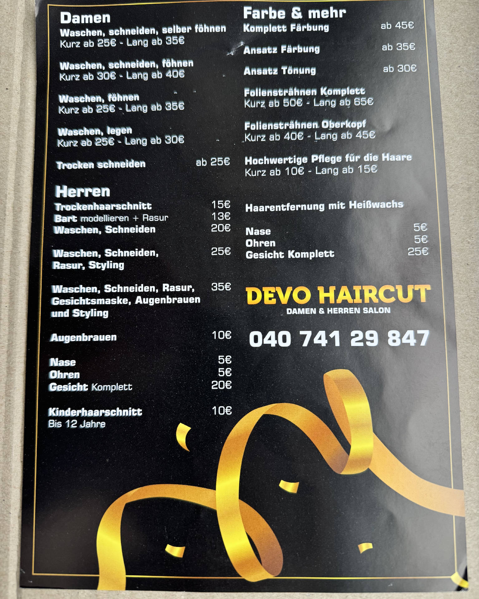 wir sind ein Professioneller Friseursalon, der mit qualitätvoll Produkten arbeitet wir bieten wie viel Damen sowie auch Herren Dienstleistungen an die Kinder werden bei uns natürlich nicht vergessen. Wir freuen uns auf euren Besuch. Mit freundlichen Grüßen Devo Haircut
