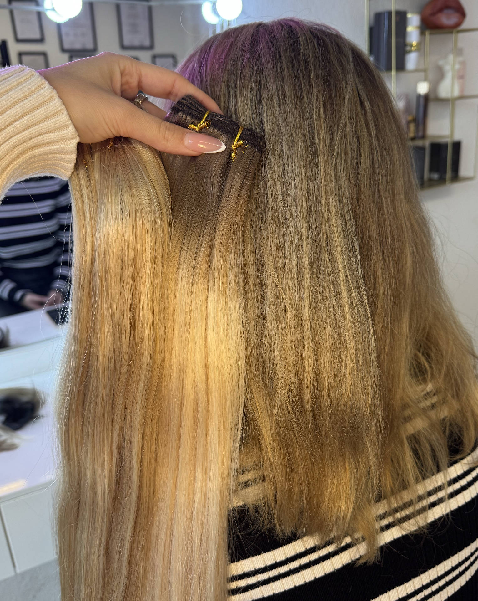 ❗️Hinweis an alle Neukund:innen❗️ Bitte vorerst einen Beratungstermin Buchen. 💕 Ich biete das Einsetzen von Tape Extensions und Microring Tressen (ohne Einnähen) an. Mein Konzept: Ich setze bewusst auf Methoden, die: • Leicht zu tragen sind • Deine Kopfhaut schonen • Natürlich aussehen • Deinen Alltag nicht einschränken Ob Mikrotressen ohne Nähen oder Tape-Ins – wir wählen gemeinsam die Technik, die am besten zu dir, deinen Haaren und deinem Lebensstil passt.