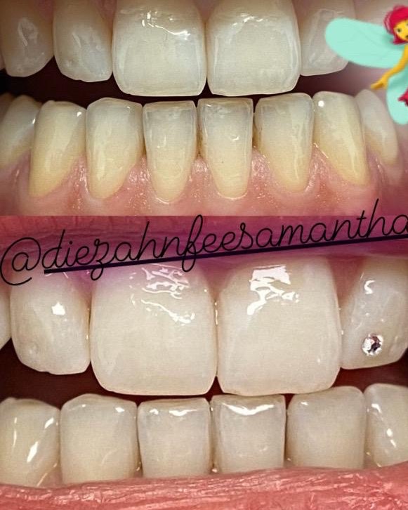 Hallo meine Lieben, hier ist die Zahnfee ich bin zuständig für professionelles zahnkosmetik biete * Bleaching * Kosmetische Reinigung * Zahnschmuck „Swarovski“ * Zahnkorrektur * Schulungen teeth gems Termine und Beratungen können sie über mich vereinbaren. Eure Zahnfee Samantha Bellucci seit 2007 ZMF, ZMV, ZMP, QMB, bleachistin, Zahnschmuck zertifizierte zahnschmuck Trainerin