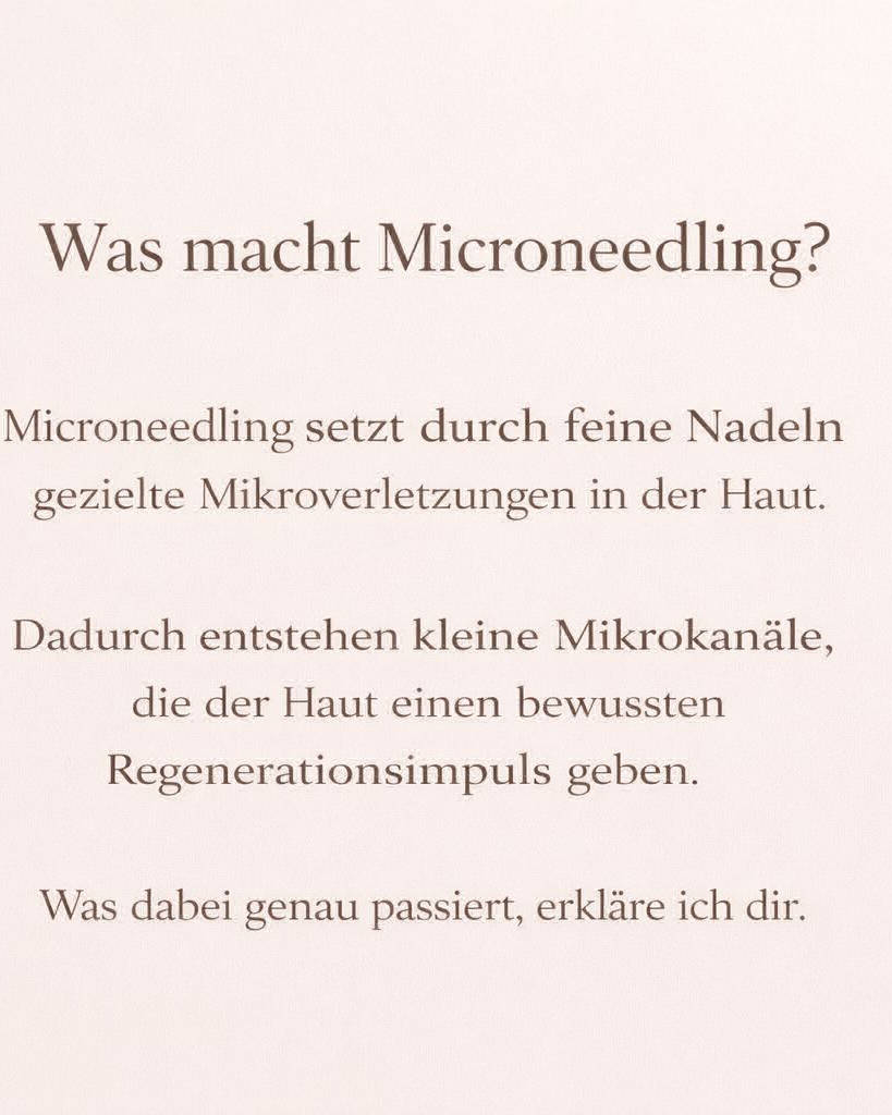 Hallo, ich bin Constance đ Meine Leidenschaft ist gesunde, schöne Haut â ganz ohne Druck, dafĂŒr mit viel FeingefĂŒhl. Ich habe mich auf Microneedling spezialisiert und arbeite individuell, ehrlich und hautgerecht. Jede Haut ist anders, deshalb nehme ich mir Zeit fĂŒr dich und deine BedĂŒrfnisse. Mein Fokus liegt auf Hautregeneration, Frische und einem natĂŒrlichen Glow â keine schnellen Versprechen, sondern nachhaltige Ergebnisse. Mir ist besonders wichtig, dass du dich bei mir wohl und gut aufgehoben fĂŒhlst. Sauberes Arbeiten, hochwertige Wirkstoffe und eine ruhige AtmosphĂ€re stehen fĂŒr mich an erster Stelle. Ich freue mich darauf, dich kennenzulernen und deine Haut ein StĂŒck auf ihrem Weg zu begleiten