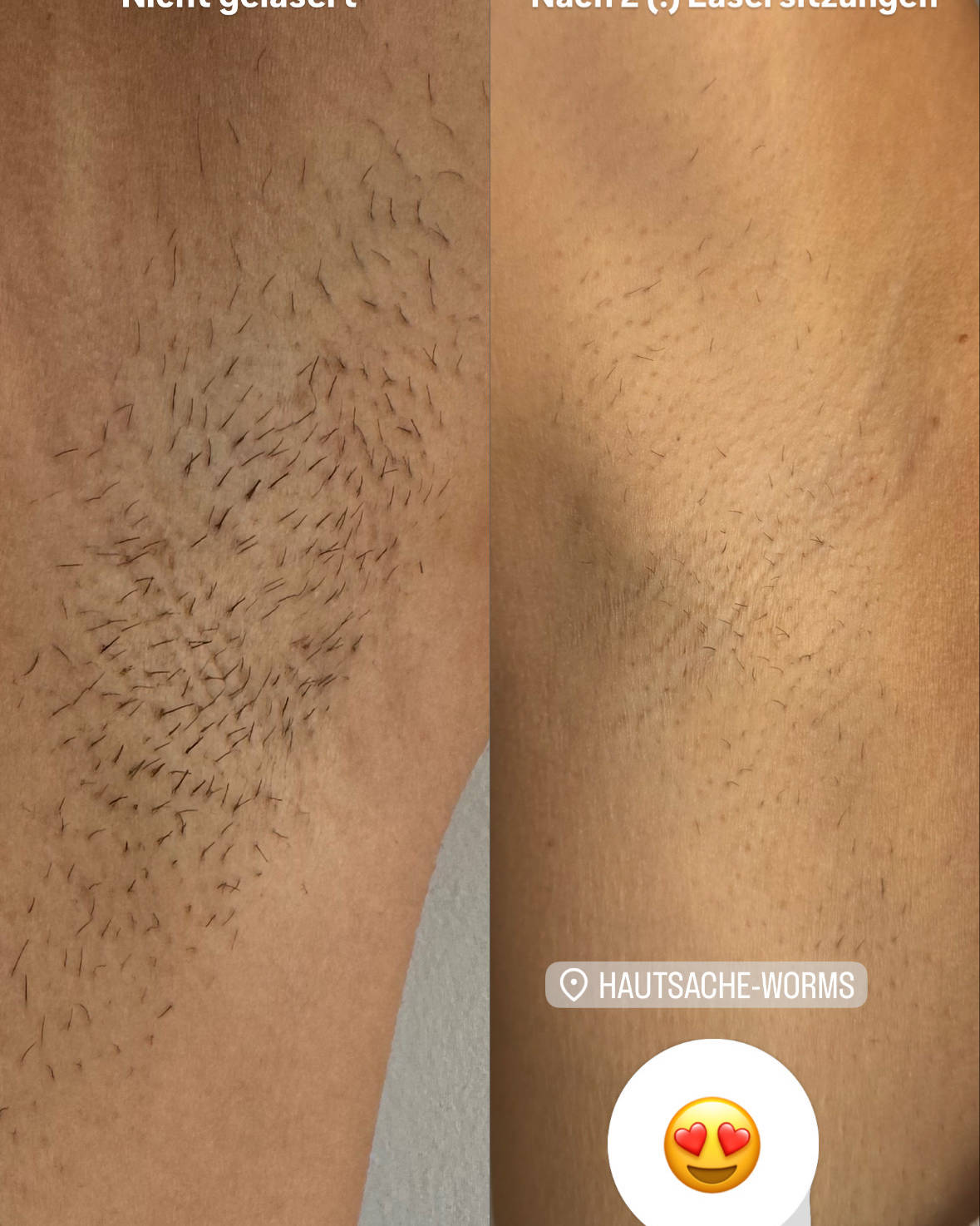 Ich bin wirklich sehr zufrieden mit der Haarentfernung im Achselbereich. Das Preis-Leistungs-Verhältnis ist absolut fair und wirklich gut. Alina ist sehr nett und sympathisch. Sie geht einfühlsam auf die eigenen Empfindungen ein und nimmt sich Zeit. Wenn man Fragen hat oder unsicher ist, erklärt sie alles verständlich und ruhig, sodass man sich gut aufgehoben fühlt. Ich habe mich während der Behandlung sehr wohlgefühlt und kann die Haarentfernung bei ihr auf jeden Fall weiterempfehlen. Wirklich tolle Arbeit!