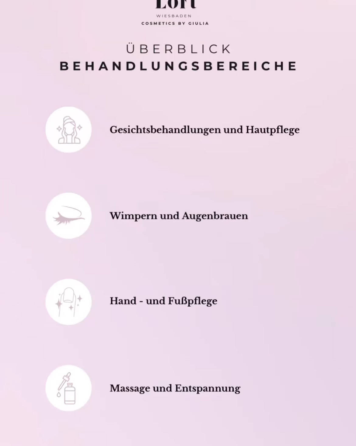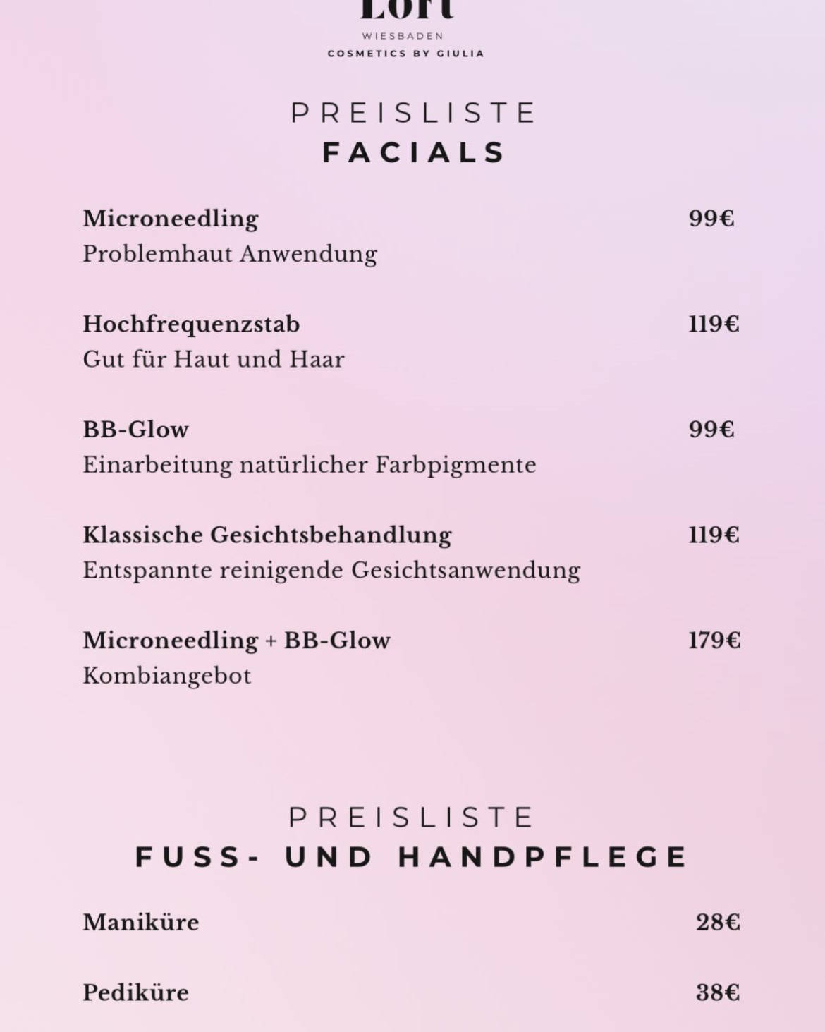 GIULIA LO VOI Über mich SCHÖNHEIT BEGINNT MIT VERTRAUEN. ICH BIN GIULIA, STAATLICH GEPRÜFTE KOSMETIKERIN MIT HERZ UND LEIDENSCHAFT. Ich bin mehrfach zertifiziert in verschiedenen Bereichen der Kosmetik – und noch lange nicht am Ziel. Für mich gehört es einfach dazu, am Puls der Zeit zu bleiben. Deshalb bilde ich mich stetig weiter. Meine Reise begann an der staatlich anerkannten Kosmetikfachschule Wiesbaden WBK Bildungsakademie GmBh (ehem. Kosmetikschule Jäger), wo ich meinen Abschluss als staatlich geprüfte Kosmetikerin erlernte. Heute stehe ich für moderne Hautpflege, individuelle Beratung und echte Wohlfühlmomente. Denn: Schönheit ist für mich kein oberflächliches Ideal, sondern ein Ausdruck von Wohlbefinden. In meinem Studio dreht sich alles um Dich – Deine Haut, Dein Strahlen, Dein Ich. VEREINBARE NOCH HEUTE DEIN ME -TIME TERMIN! ICH FREUE MICH AUF EUCH!