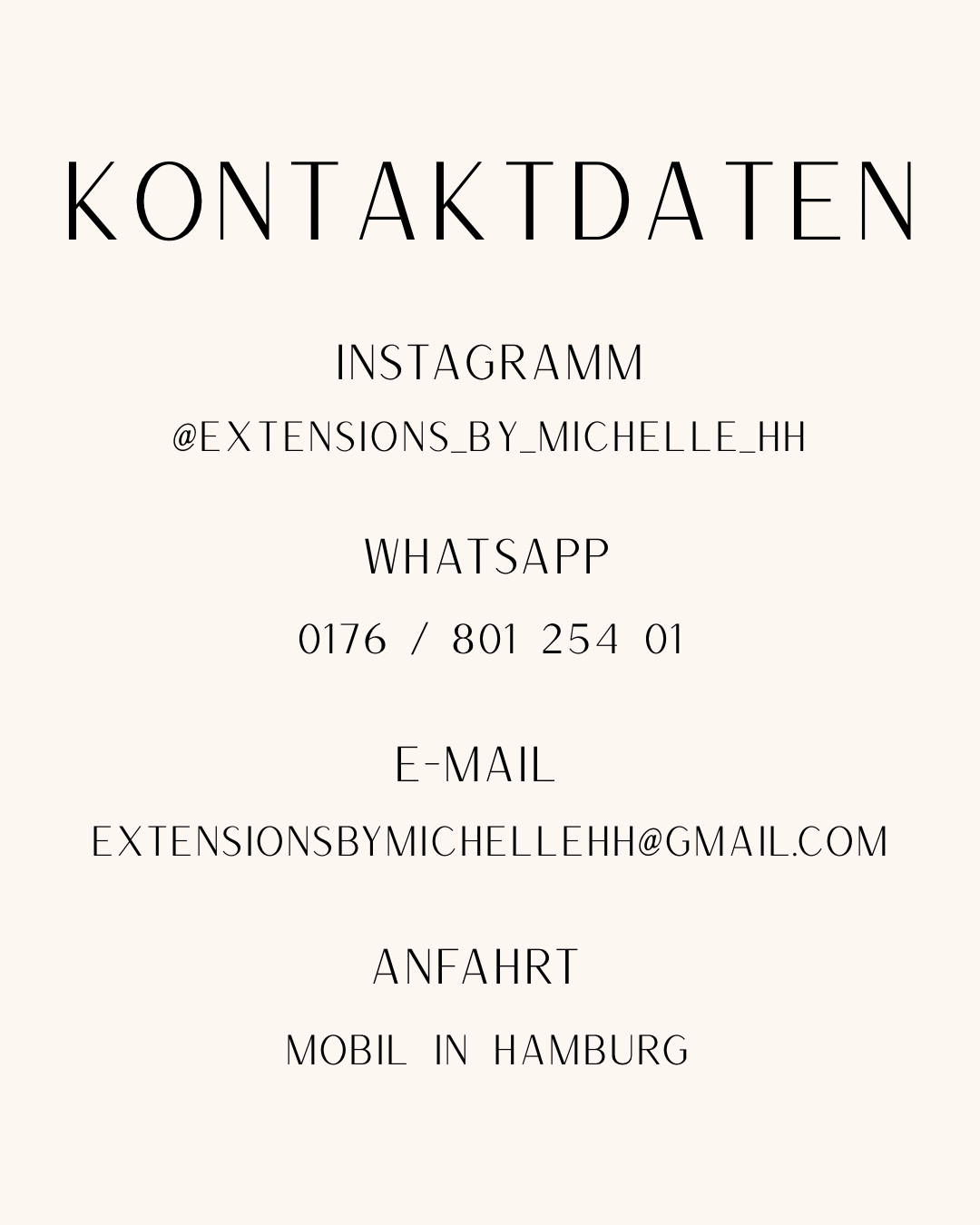 Mein Name ist Michelle, ich bin 25 Jahre alt. Ich bin HWK-geprüfte Hairstylistin & habe mich spezialisiert auf Haarverlängerungen und -Verdichtungen. Seit 2025 biete ich diese Leistungen mit viel Leidenschaft und Herz an.🤍 Ich liebe, was ich tue – denn es gibt für mich nichts Schöneres, als Menschen mit vollerem, längerem Haar ein Lächeln ins Gesicht zu zaubern. Jede Behandlung ist für mich mehr als nur ein Termin – sie ist ein Moment, in dem du dich wohlfühlen und einfach du selbst sein darfst. ✨ Mit hochwertigen Methoden und viel Feingefühl arbeite ich daran, dein Wunschhaar Wirklichkeit werden zu lassen. Ich freue mich darauf, dich kennenzulernen!😍