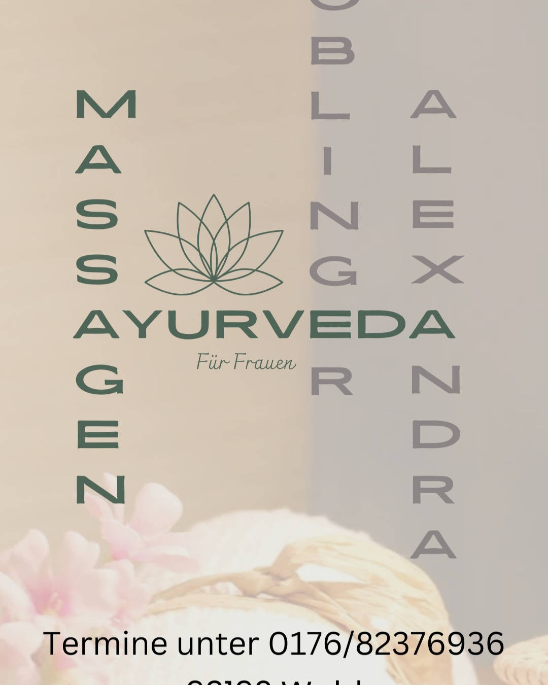 Ich biete Ayurvedamassagen speziell für Frauen an – in einem geschützten, liebevollen Raum, in dem du ganz bei dir ankommen darfst. Gönn dir eine Pause vom Alltag – dein Körper wird es dir danken. Ich freue mich darauf, dich ein Stück auf deinem Weg zu mehr Wohlbefinden begleiten zu dürfen. Alexandra Doblinger