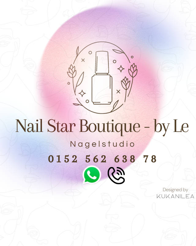 Termine Buchen (01525 6263878) telefonisch oder WhatsApp Wir freuen uns auf euch :) Willkommen bei Nail Star – Ihrem Nagelstudio in der Schönhauser Allee, Berlin! Entdecken Sie die Kunst der Nagelpflege bei Nail Star. Unser erfahrenes Team bietet erstklassige Nagelmodellagen, von klassischer Eleganz bis hin zu trendigem Nail Art. Unsere Leistungen: Professionelle Nagelpflege Hochwertige Produkte Hygiene & Sicherheit Warum Nail Star? Wir bieten nicht nur exquisite Nagelkunst, sondern auch ein einladendes Ambiente und exzellenten Service für Ihr Wohlbefinden. Besuchen Sie uns: Erleben Sie die Verwandlung Ihrer Nägel. Buchen Sie noch heute Ihren Termin online oder rufen Sie uns an. Verwöhnen Sie Ihre Nägel bei Nail Star – wir freuen uns darauf, Sie zu verschönern! Grüße Le